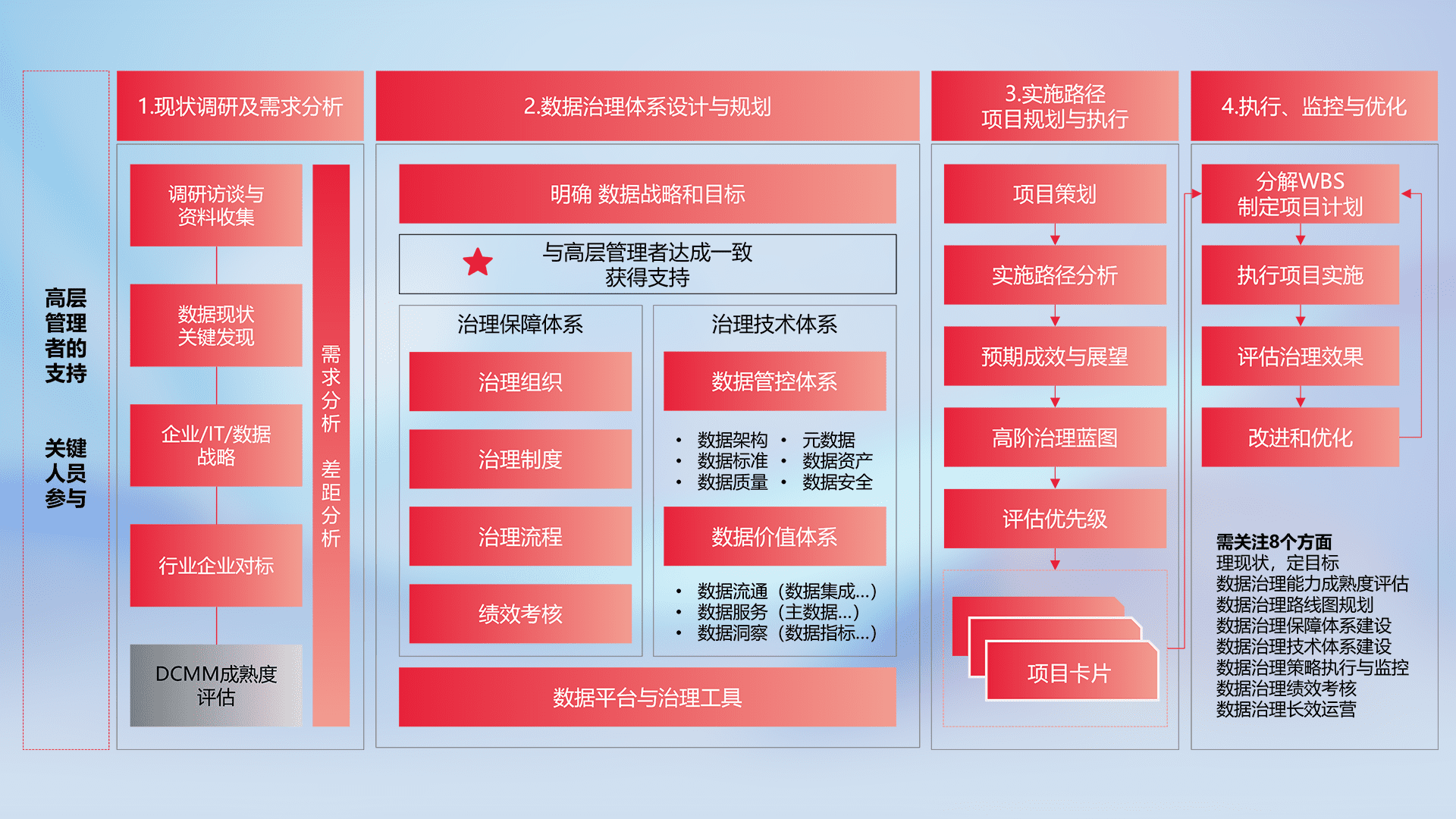 制定并执行统一的数据标准,,,,规范数据定义和格式,,,消除冗余和不一致性,,实现跨部门和跨系统的数据一致性,,为企业提供标准化的数据基础。。